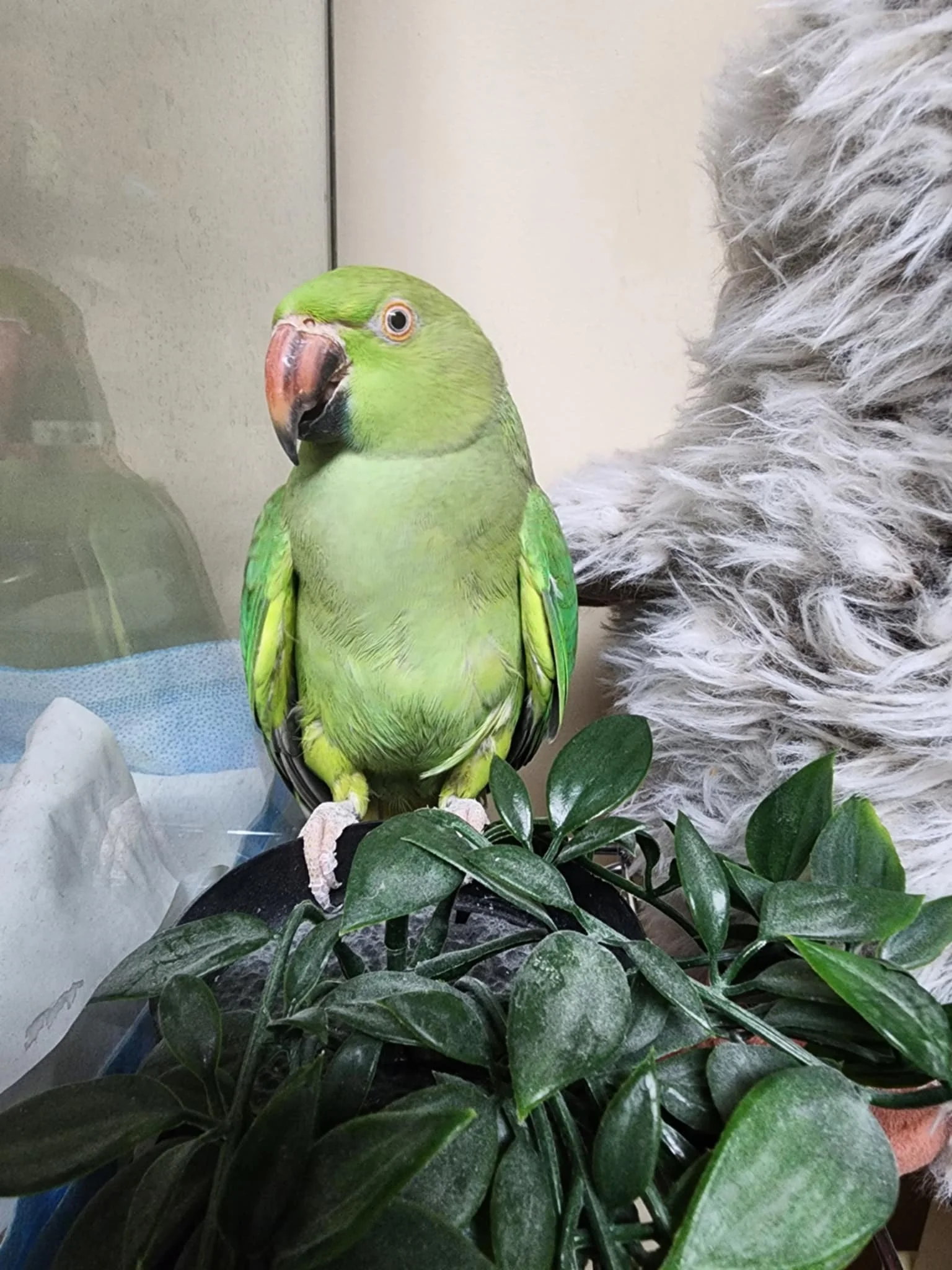 Amara is a fun bird to watch but she is a hands off bird as she is very scared of people. When she is comfortable in her surroundings she explores and will play with toys. She would be a good bird to practice training with but understand that it will be a slow process. If you just like having birds around and watching their antics and handling them is not important to you, she could be the right fit!