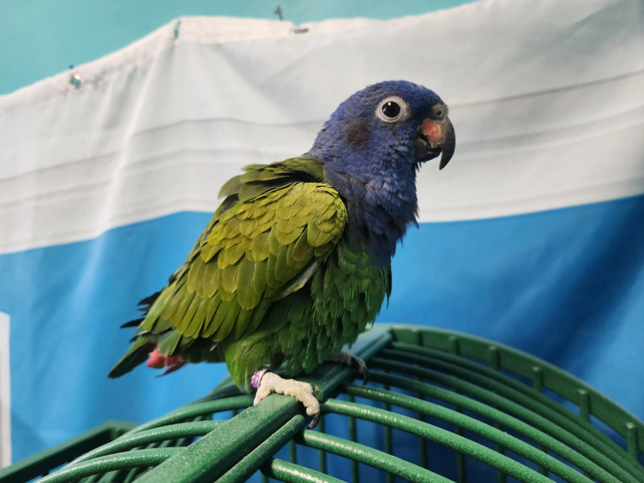 He is mostly a perch potato but does like exploring. Not a huge fan of stepping up from the cage, but will accept scritches, and will step up if heβs not on the cage. Eats really well and loves to shower with a mist bottle. He is quite loud, which is something to take into consideration if one is considering adopting.