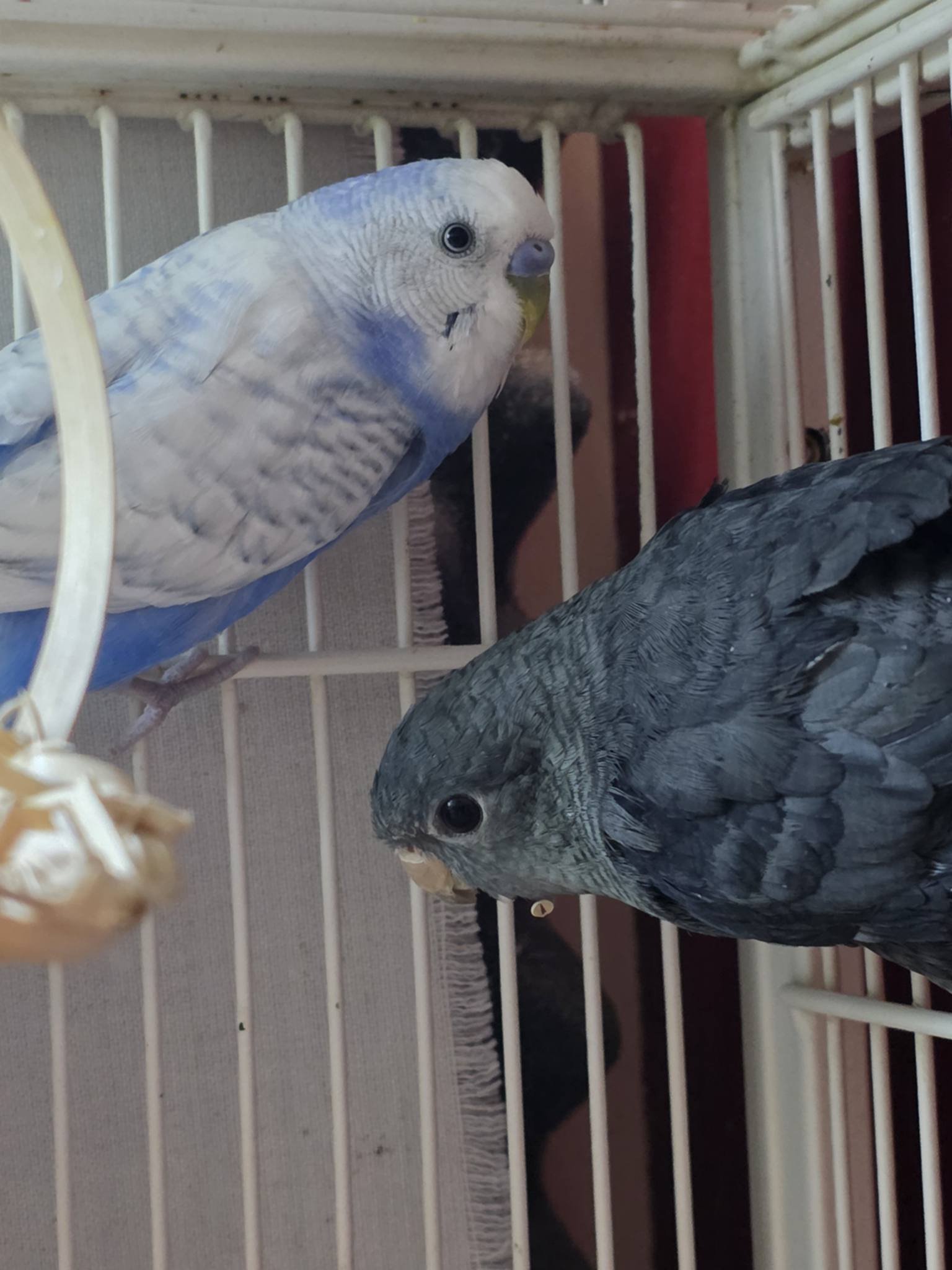 One of the best parts of my life here is my very special friendship with a little budgie. We are inseparable! We spend our days preening each other, napping side by side, and keeping close no matter what weβre doing. My budgie friend looks out for me and makes me feel safe every single dayβand I love him so much.