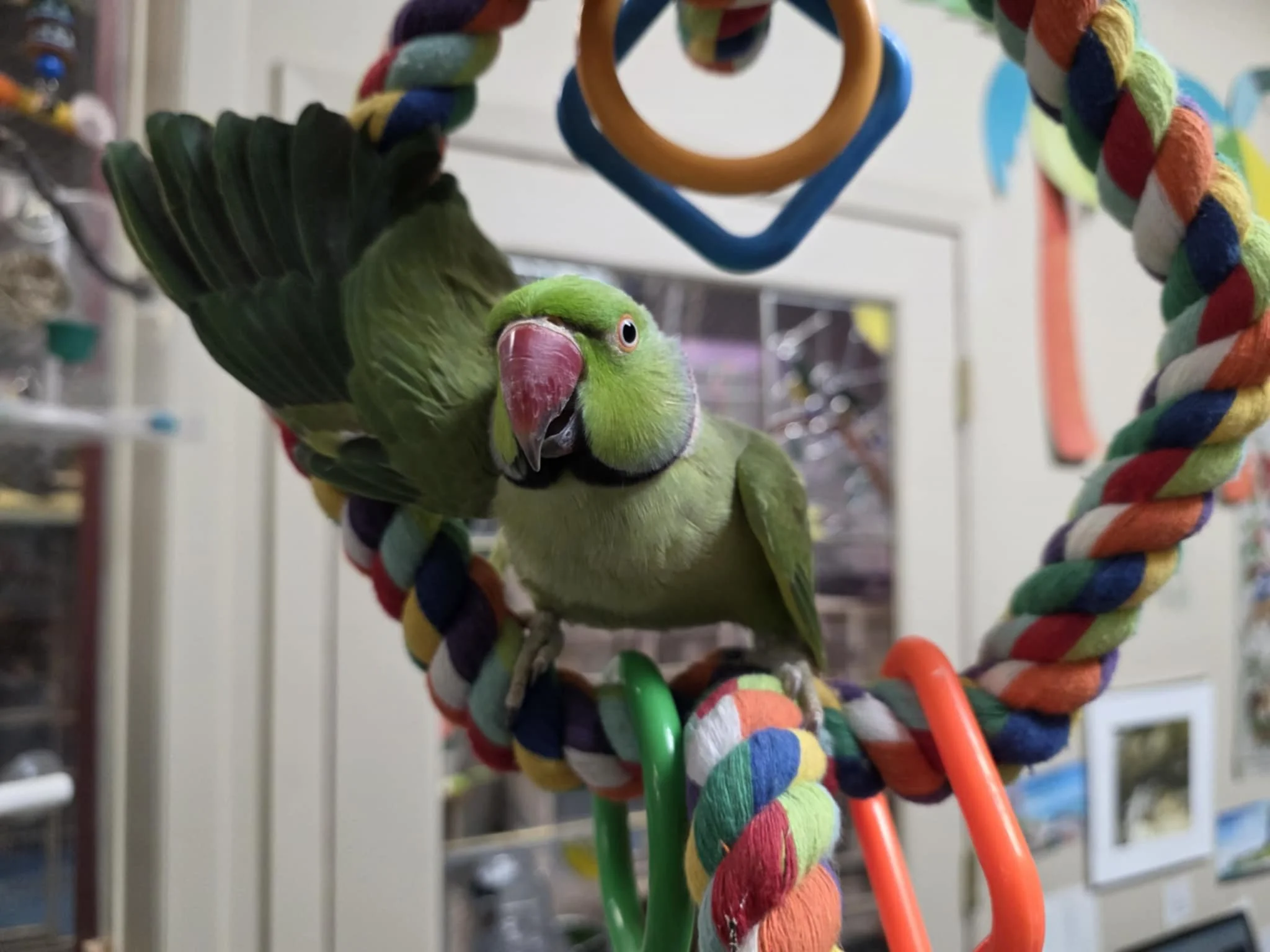 This birdo is super shy and strongly bonded with his brother. They are comical to watch as they go about their day and they do settle down once they are comfortable in their settings.